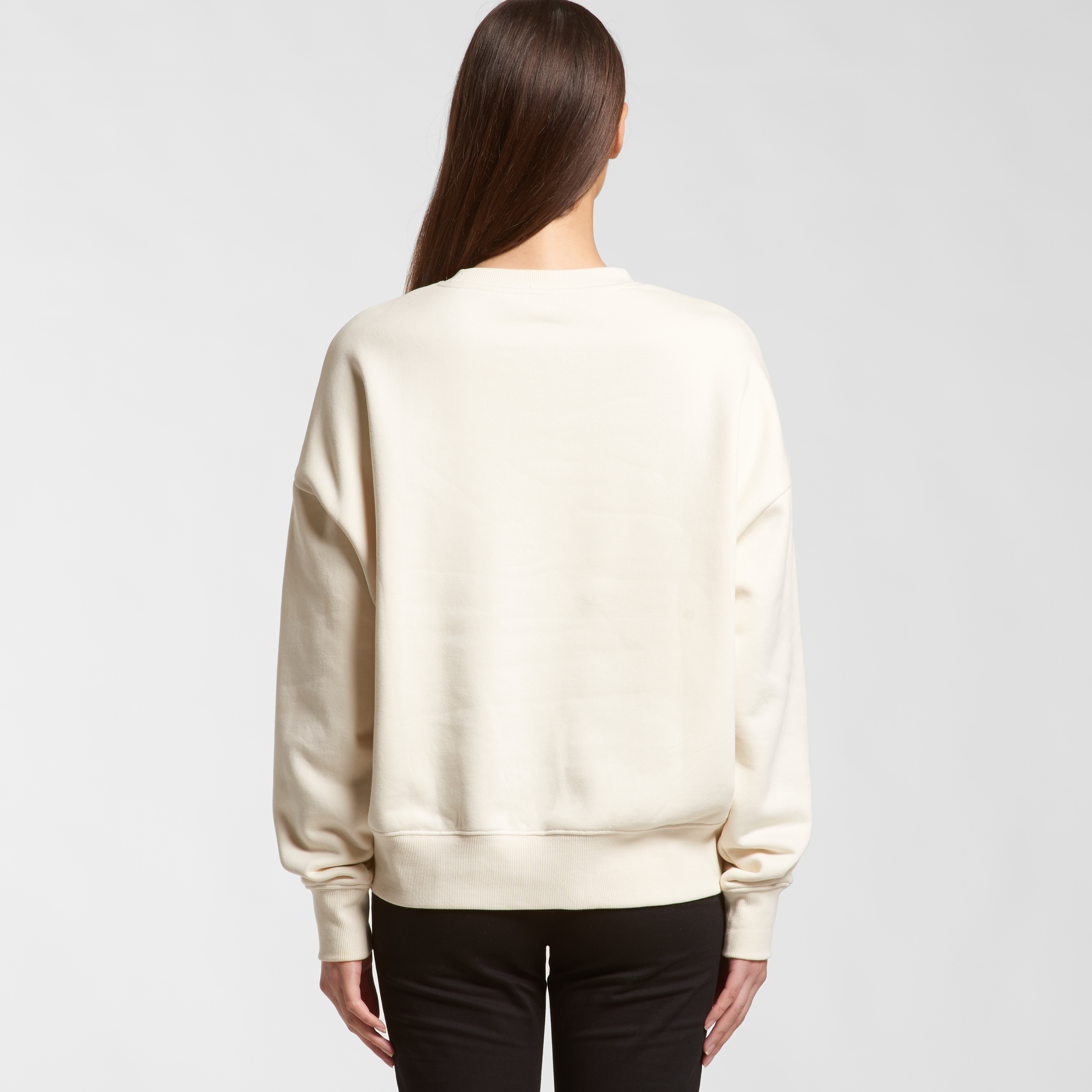 Neck ribbing with twin needle stitch, ribbed cuff, side seamed, shoulder to shoulder tape, double needle hems, preshrunk to minimise shrinkage